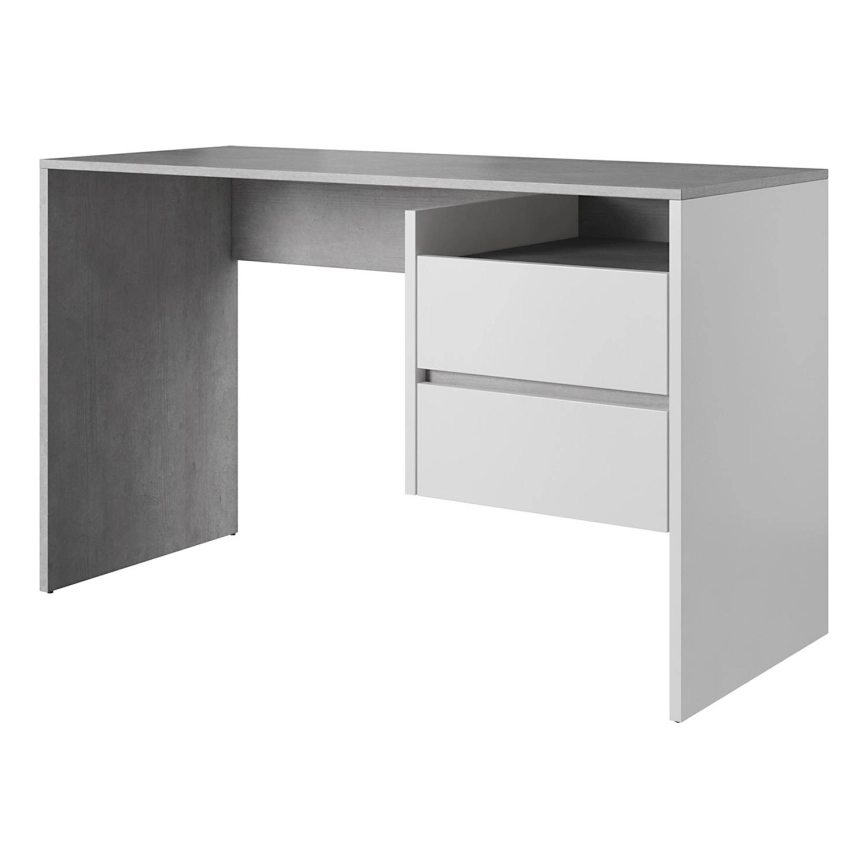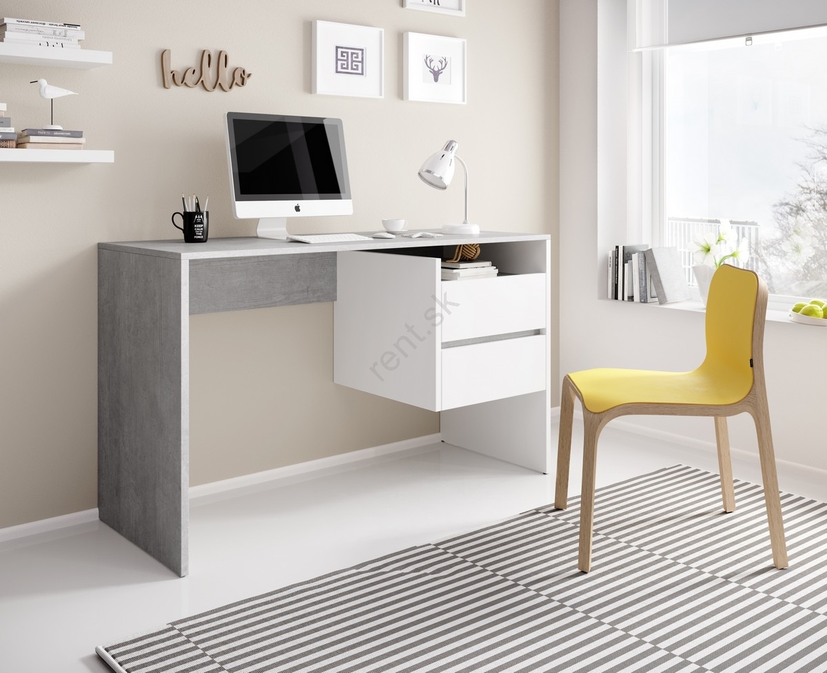 Písací stôl so zásuvkami MARLO, betónová sivá/biela