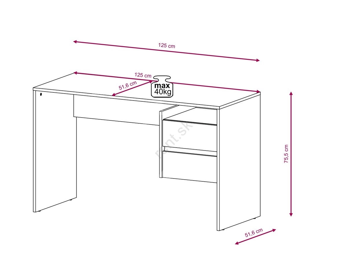 • Disponuje bočnou policou s dvoma zásuvkami, ideálnymi na uloženie kníh, kancelárskych potrieb alebo dekorácií.