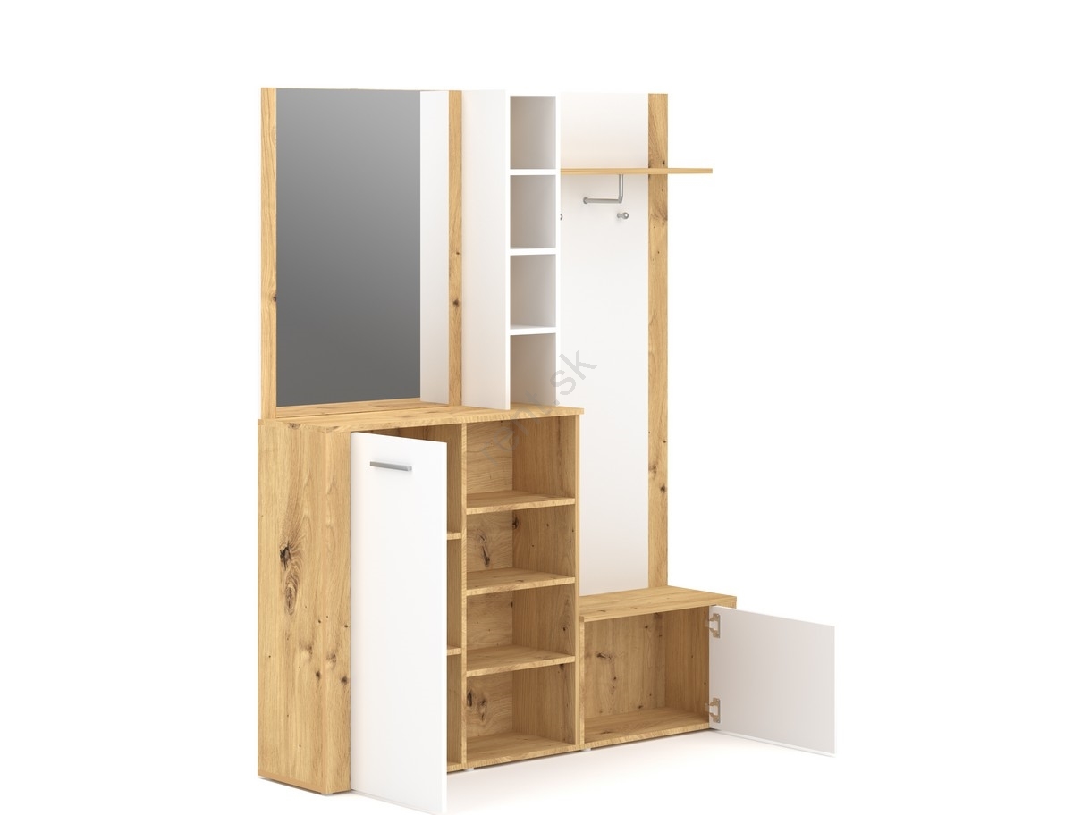 • Otvorené police, háčiky, tyč na kabáty a veľké zrkadlo ponúkajú presne to, čo potrebujete.