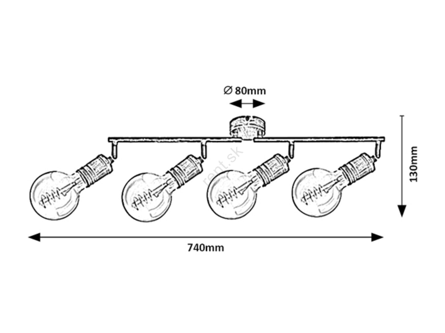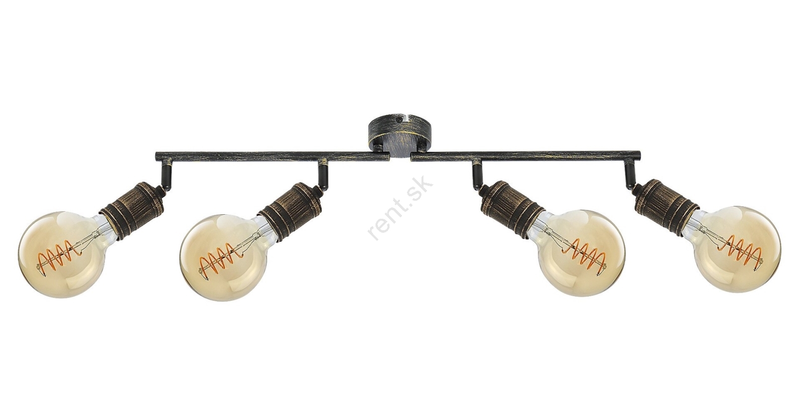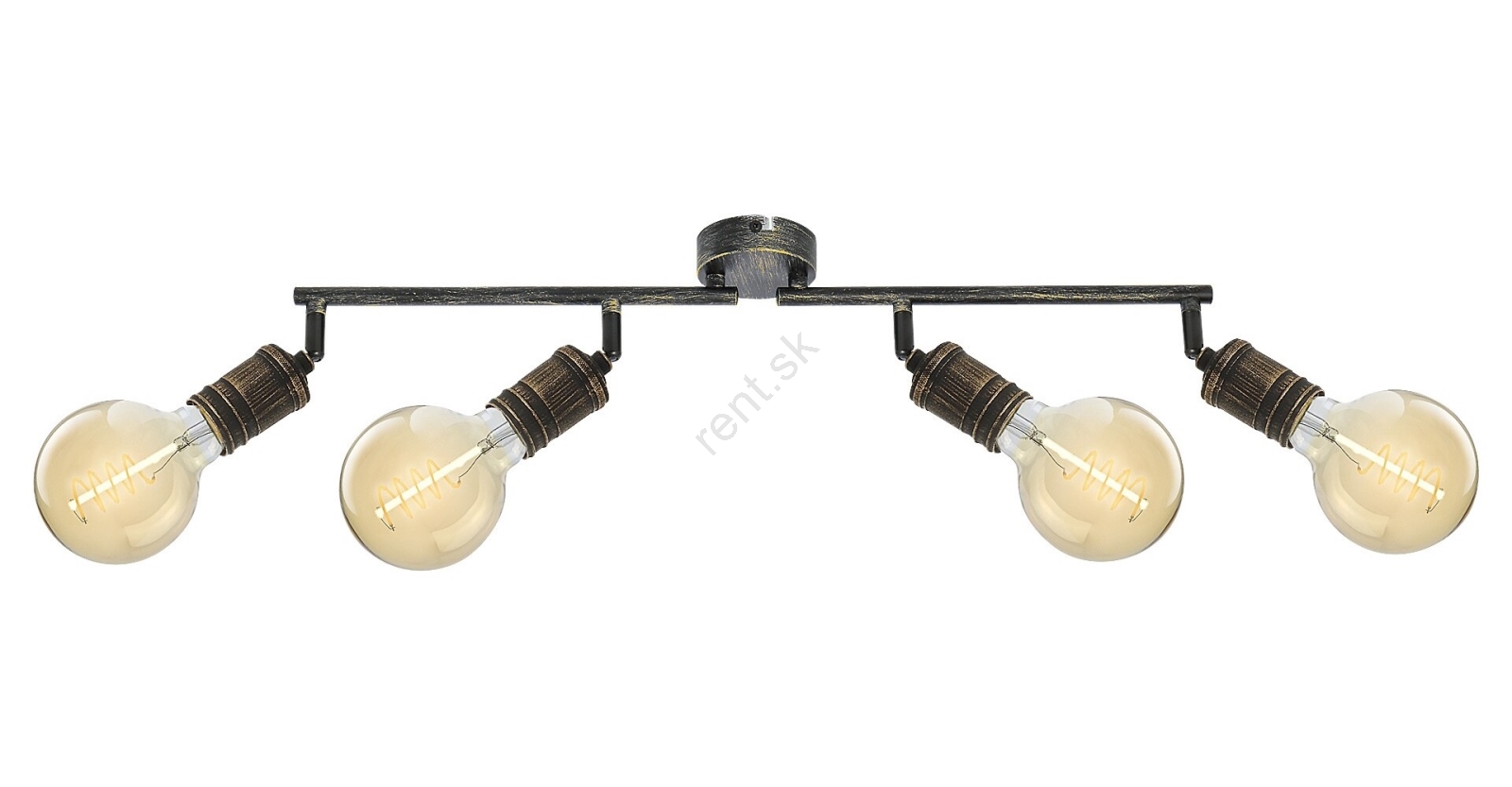 Bodové svietidlo Fidel so 4 žiarovkami v industriálnom štýle môže byť skvelou voľbou do rôznych miestností vášho bytu: môžete ho namontovať do obývacej izby, spálne, jedálne alebo aj do kuchyne. Starožitné zlaté kovové svietidlo je možné upevniť na stenu pomocou malého okrúhleho ozdobného podstavca. 4 hlavy svietidla sú umiestnené na nosnej tyči zložené z dvoch častí a pripevnené k ozdobnej základni. Žiarovky sú voľne stojace. Svietidlo Fidel je určené pre 4 žiarovky, každá s výkonom do 25W. Typ pätice je E27. V závislosti od vášho vkusu a miesta inštalácie si môžete pre toto svietidlo zvoliť teplé alebo prirodzené biele svetelné zdroje. Vďaka flexibilným hlavám svietidla môžete svetlo tohto stropného svietidla nasmerovať podľa svojich potrieb. Rozmery bodového svietidla Fidel so 4 žiarovkami sú nasledovné: šírka 740 mm, výška 130 mm, vzdialenosť od stropu 115 mm, inštalačný priemer 80 mm. Tento model je dodávaný bez svetelných zdrojov.