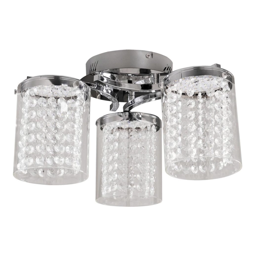 Chrómové nástenné svietidlo Astrella vyrobené z kovu a skla bude impozantným doplnkom vo vašej modernej domácnosti. Tento model s krištáľovými trblietkami odporúčame predovšetkým do obývacej izby alebo spálne. Kovový dekoratívny podstavec svietidla Astrella dopĺňajú tri valcovité tienidlá a ukryté sklenené kryštály. Stropné svietidlo je vybavené vstavanými LED svetelnými zdrojmi s celkovým výkonom 18 W, svietivosťou 1350 lúmenov a farebnou teplotou 4 000 K. Svetelné zdroje sa vyznačujú mimoriadne dlhou životnosťou až 30 000 hodín. Svietidlo vyžarujúce prirodzené biele svetlo vytvára v miestnosti moderný a čistý efekt. Svietidlo Astrella má celkový priemer 350 mm a vzdialenosť 235 mm od stropu. Tento atraktívny model je dodávaný s 5-ročnou zárukou.