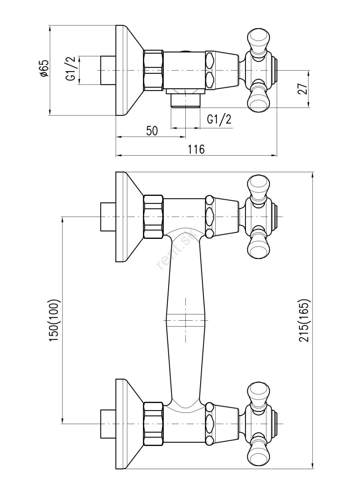 • Nástenná sprchová sada s vodovodnou batériou.