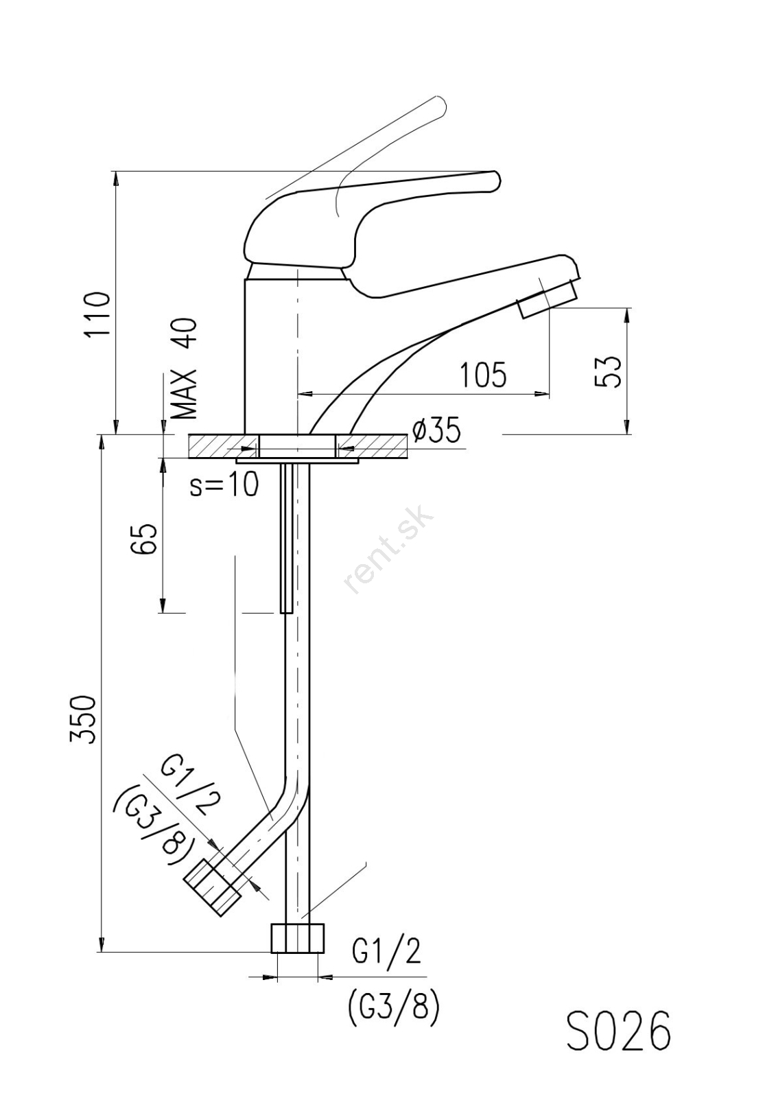 • Stojanková umývadlová batéria bez výpuste.