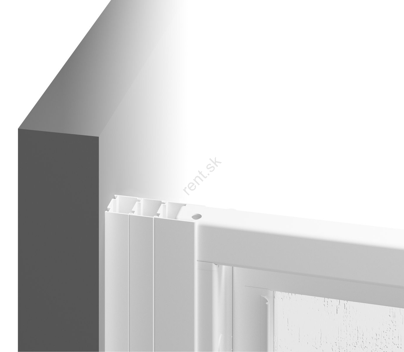 • Trojdielne sprchové dvere s výplňou z nepriehľadného plastu.