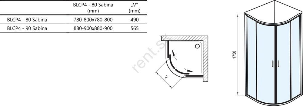 Kút s výškou 175 cm sa montuje do obloženého rohu kúpeľne na hlbokú vaňičku Sabina.
