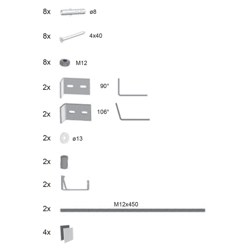 • Montážna sada pre krycí akrylový panel.