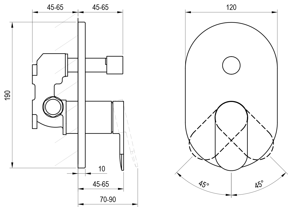• Dvojcestné prevedenie s automatickým prepínačom umožňuje jednoduché prepínanie medzi dvoma výstupmi, najčastejšie medzi napúšťaním vane a sprchou alebo medzi hlavovou a ručnou sprchou.