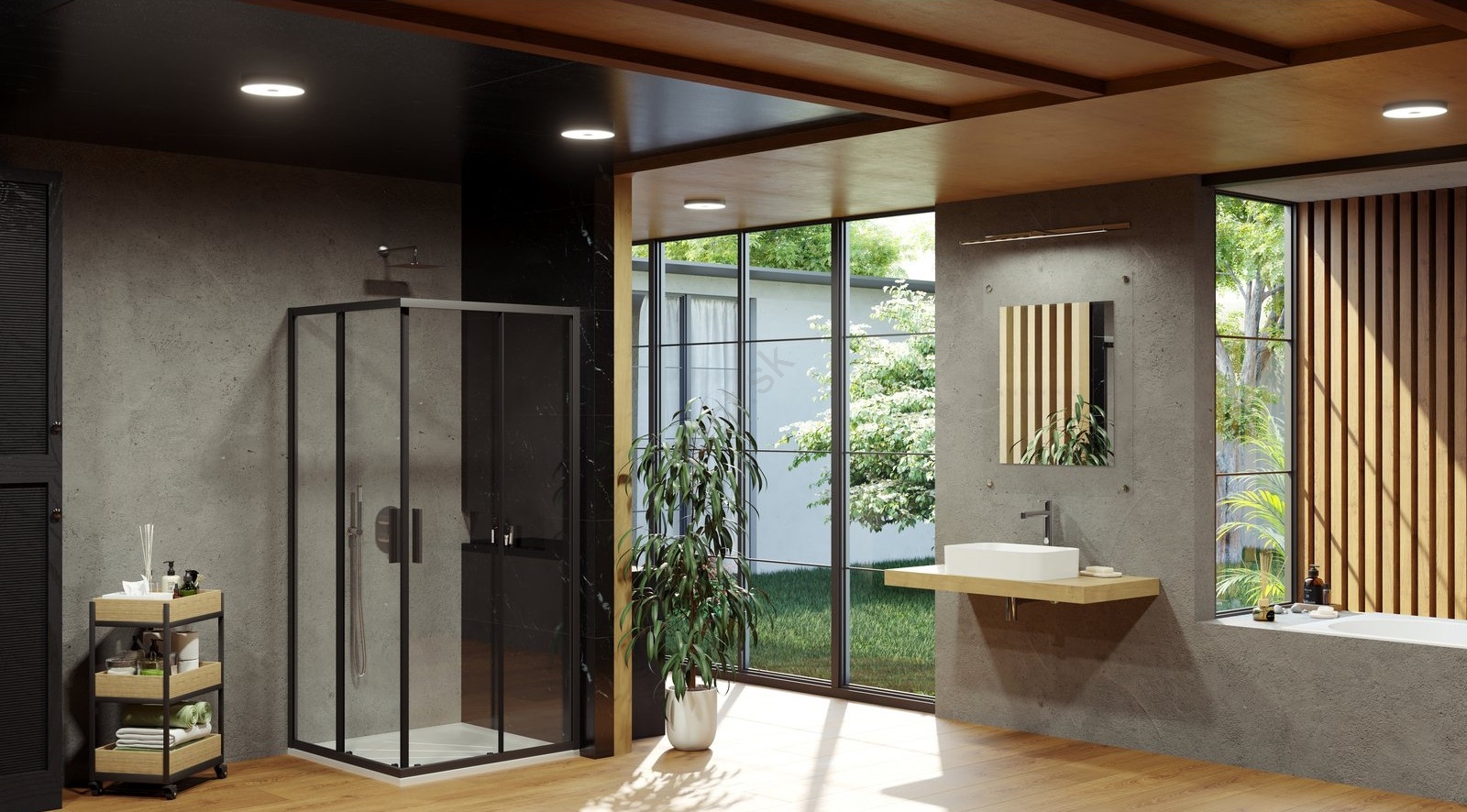 • Štvordielny rohový sprchový kút Blix Slim v čiernom prevedení predstavuje elegantné a praktické riešenie pre moderné kúpeľne.