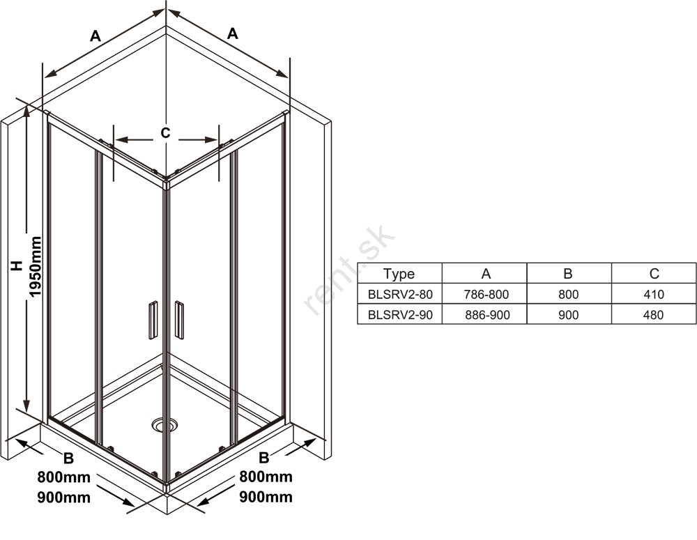 • Kút s výškou 195 cm je vybavený posuvným otváracím systémom so dvoma pevnými a dvoma posuvnými dielmi.