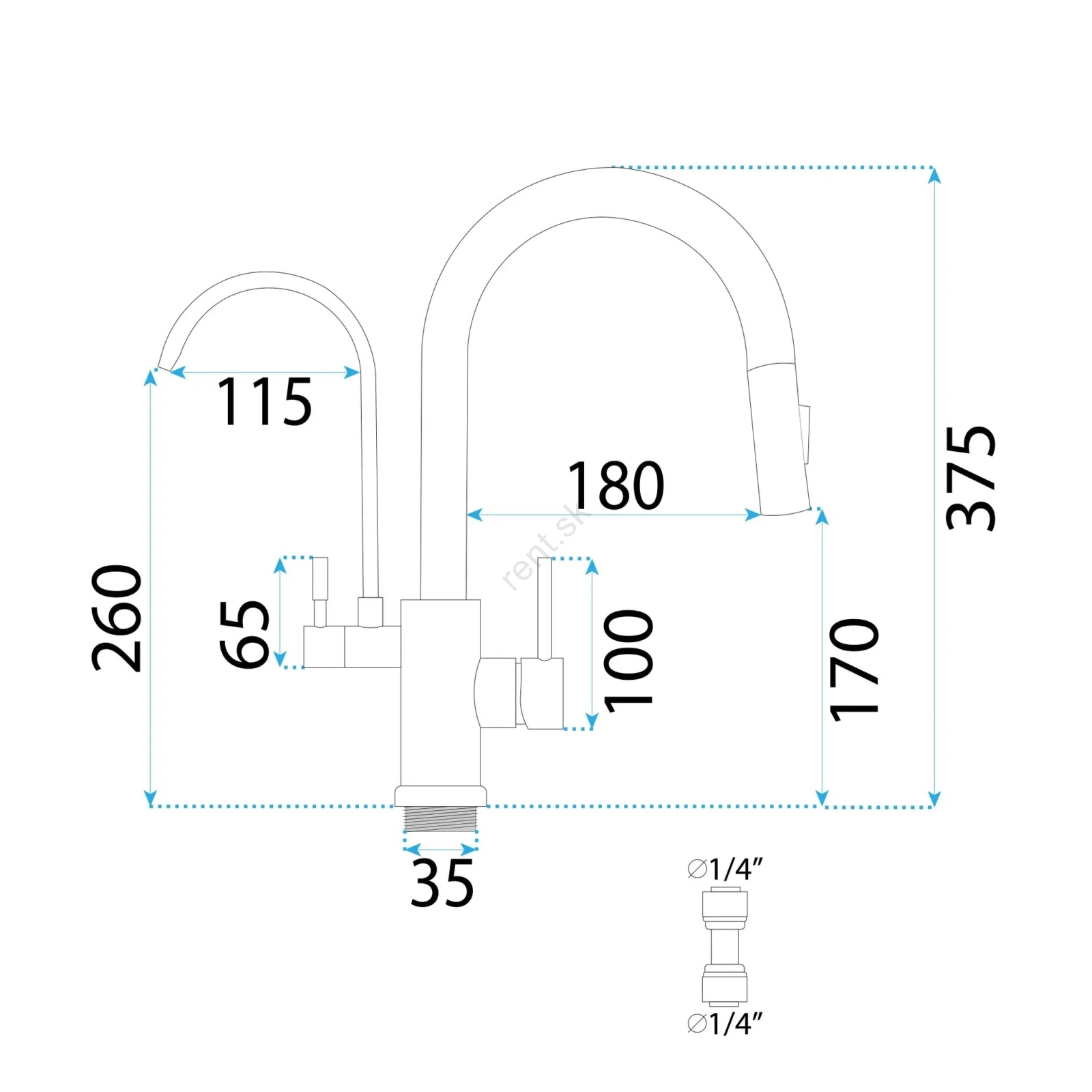 • Jednopáková kuchynská batéria s vysúvateľnou sprškou, otočným ramenom a filtráciou.