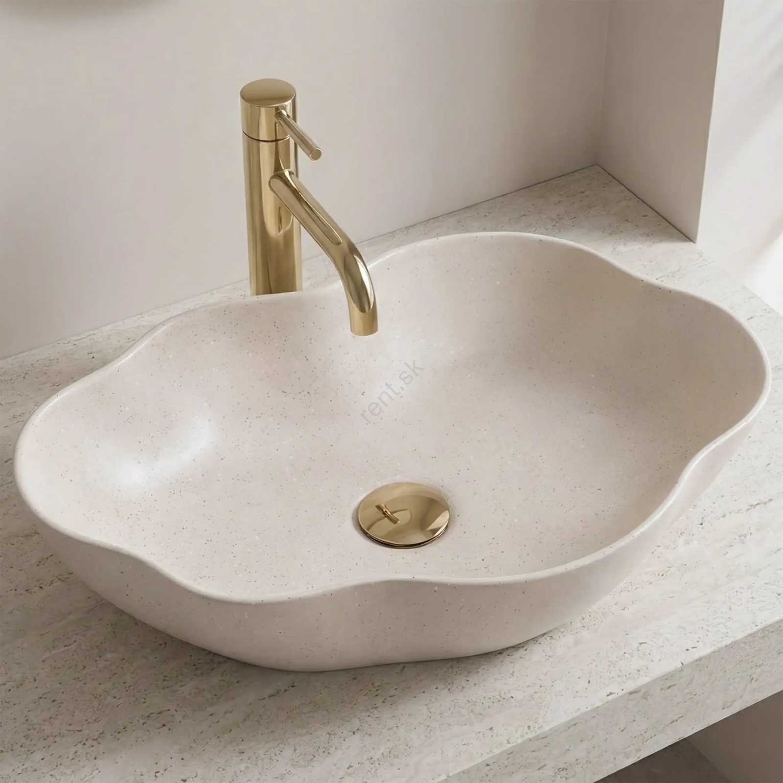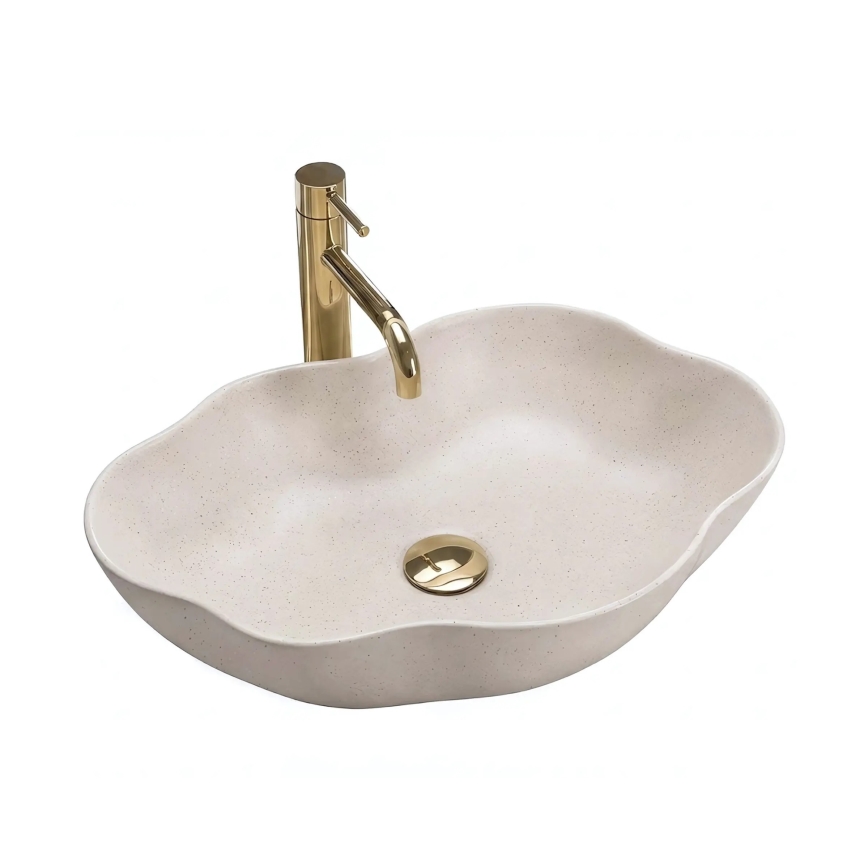 • REA-U0617 - Umývadlo na dosku PEARL 38x50,5 cm keramika/béžová/imitácia kameňa