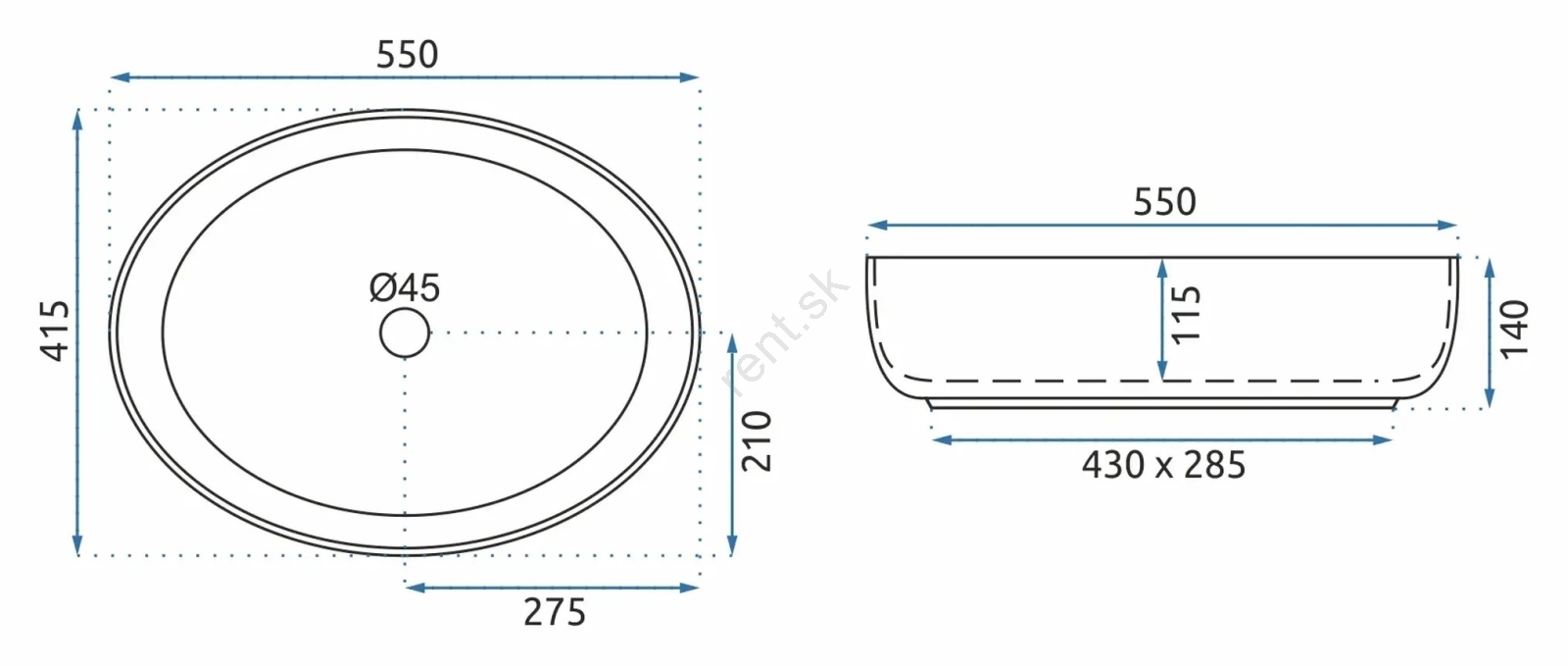 • Umývadlo je určené na montáž na pracovnú dosku, no je možné ho kombinovať aj s kúpeľňovou skrinkou.