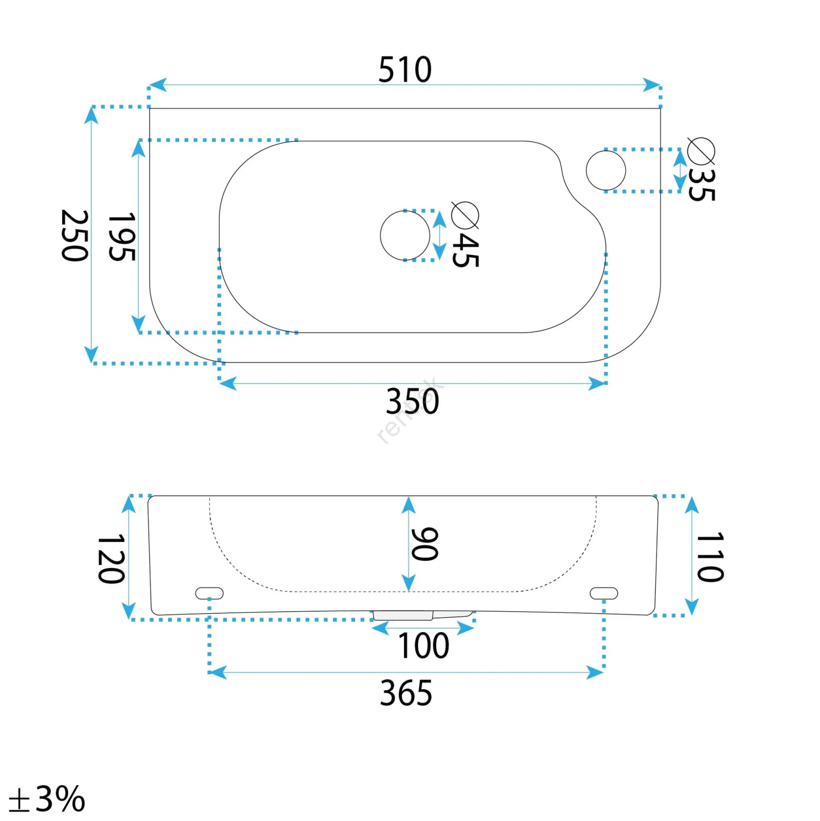 • Umývadlová batéria a výpust nie sú súčasťou balenia.