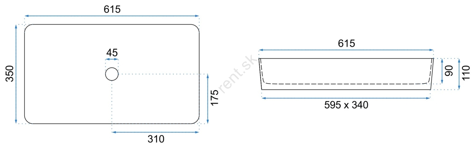 • Moderné a elegantné umývadlo bez prepadového otvoru.