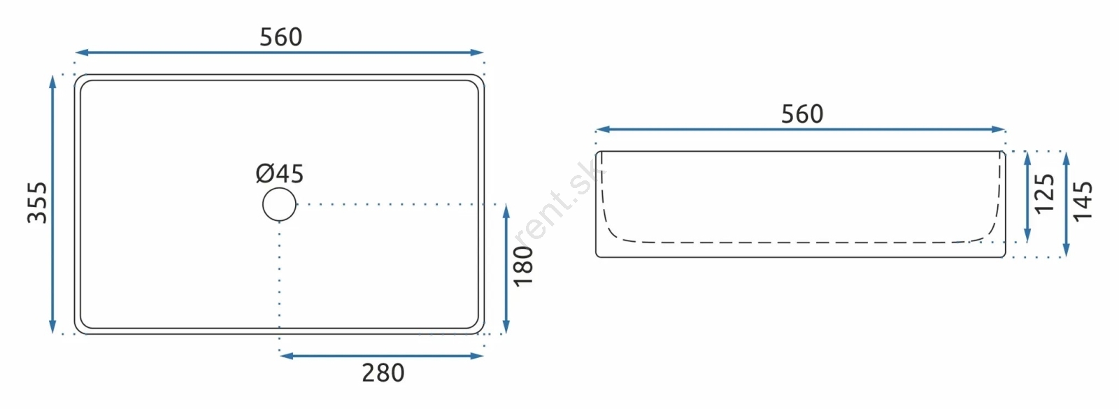REA-U5055 - Umývadlo na dosku BERTA 35,5x56 cm keramika/lesklá biela