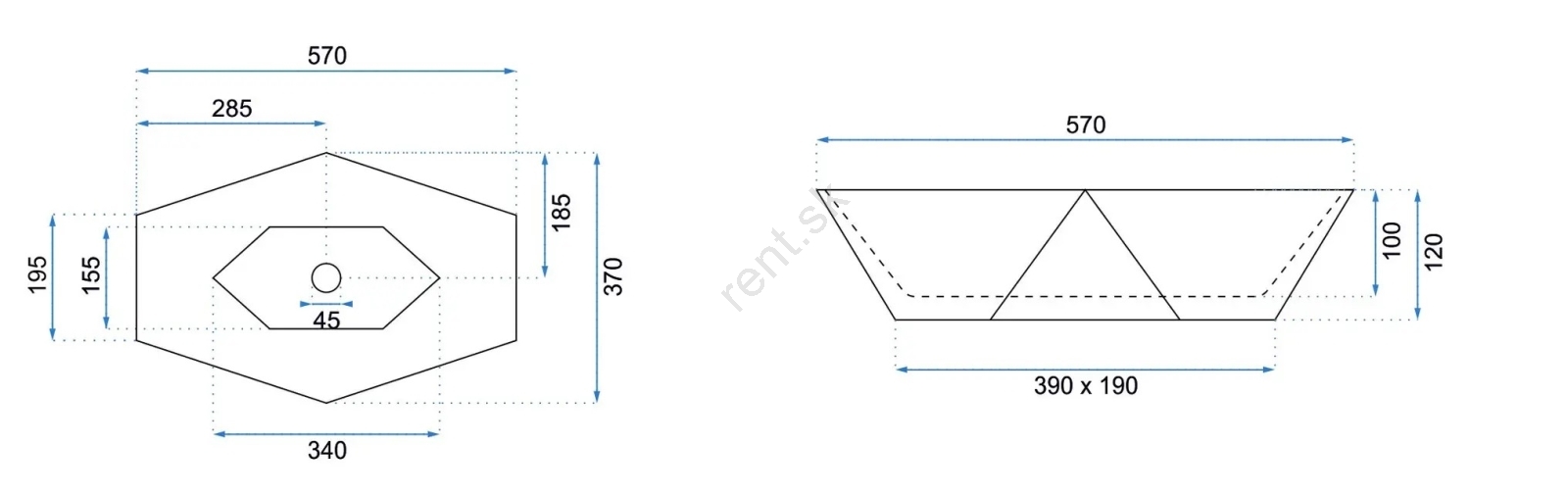 • REA-U5602 - Umývadlo na dosku VEGAS 37x57 cm keramika/imitácia kameňa