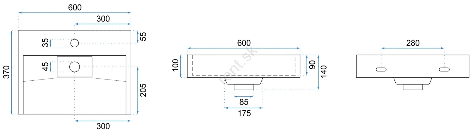 • Umývadlo je možné zavesiť alebo namontovať priamo na dosku.