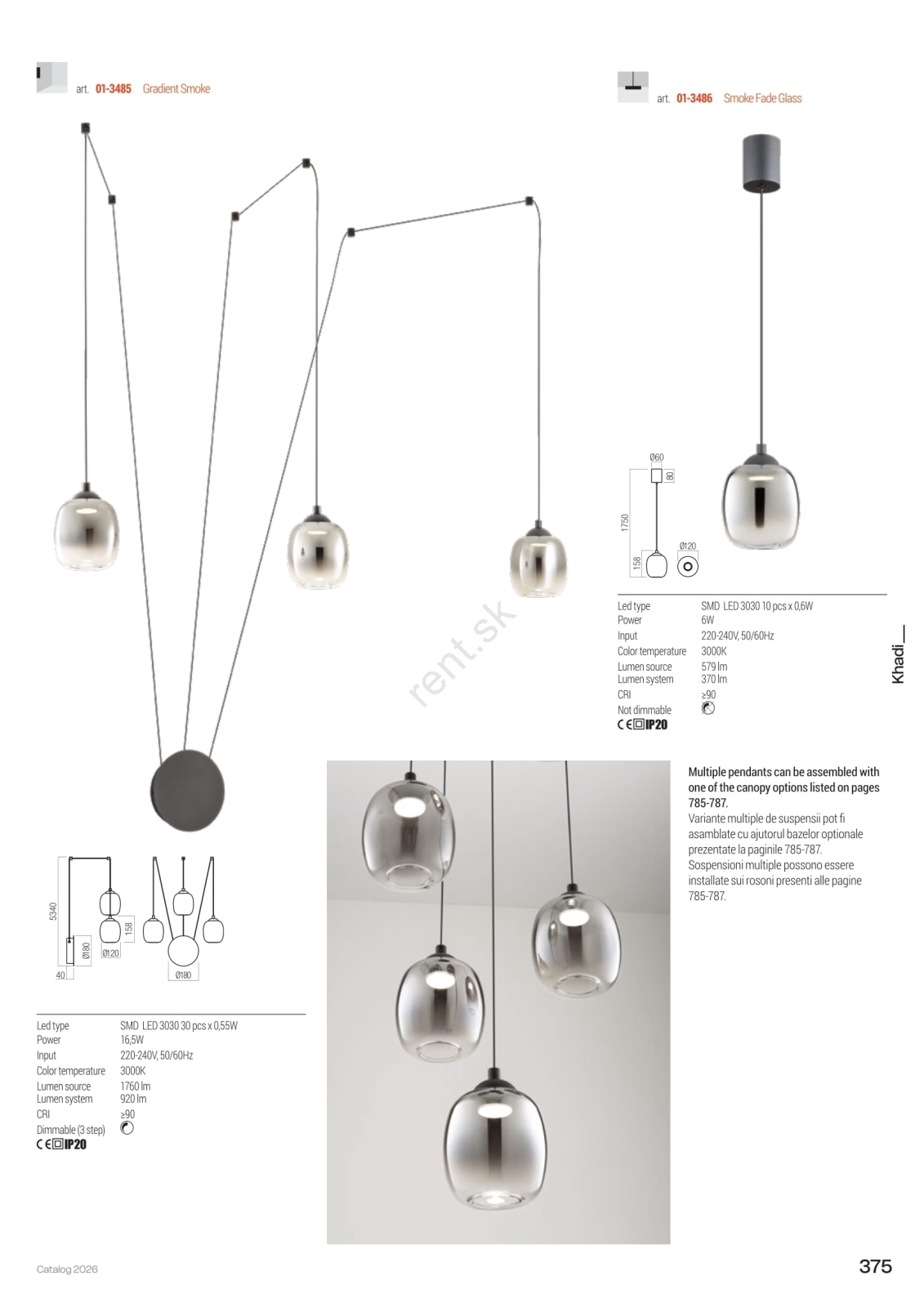 Redo 01-3486 - Elegantný závesný LED luster KHADI na lankách, LED/6W/230V, CRI 90, pr. 12 cm, čierna/dymová