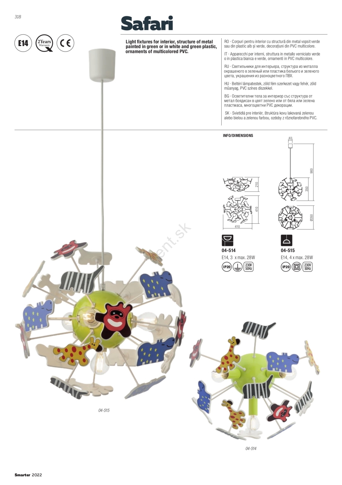 Redo 04-514 - Detské stropné svietidlo SAFARI 3xE14/28W/230V priemer 41 cm pestrofarebné charakterizuje pekný dizajn a funkčné prevedenie. Do svietidla je určená žiarovka s päticou E14. Tu si môžete kúpiť ďalšie žiarovky za výhodnú cenu. Získate tak zaujímavý doplnok do svojho domova.