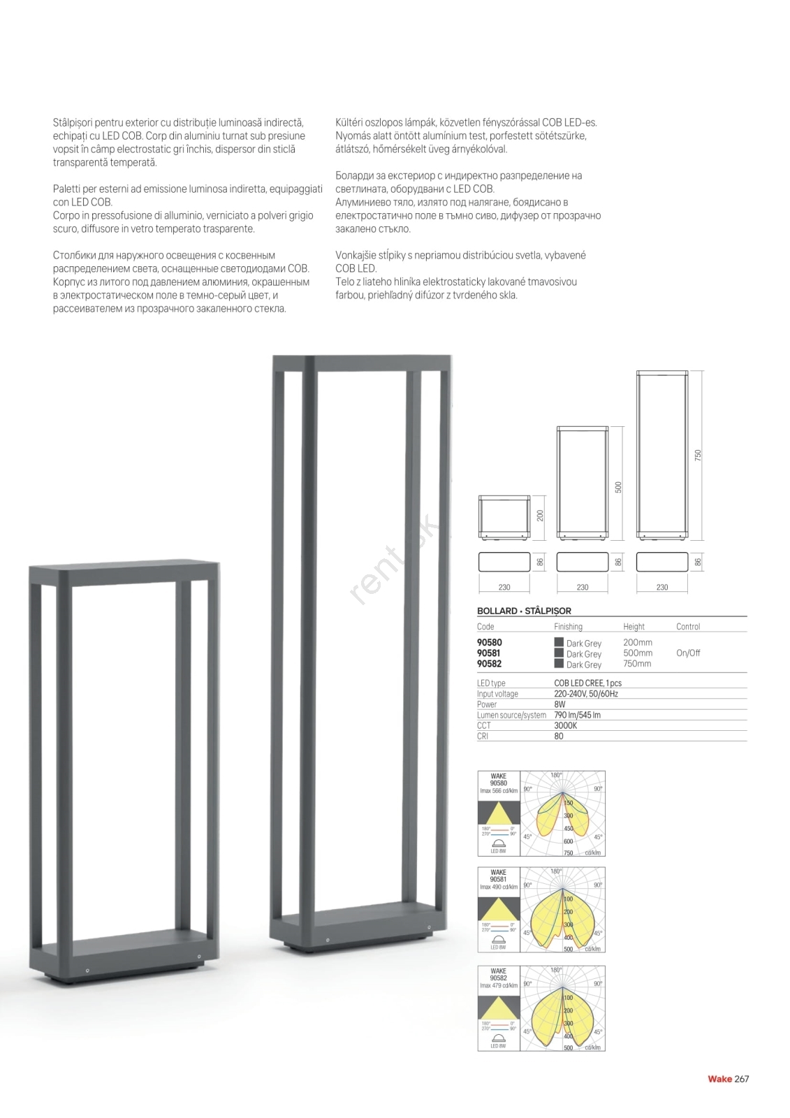 Redo 90580 - LED vonkajšie svietidlo WAKE LED/8W/230V 3000K 20 cm IP65 antracit