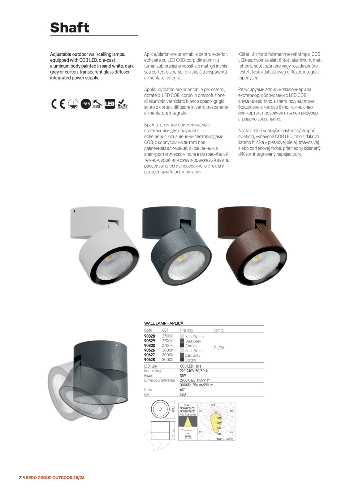 • Redo 90626 - LED vonkajšie bodové svietidlo SHAFT LED/13W/230V 3000K pr. 9 cm IP65 biela