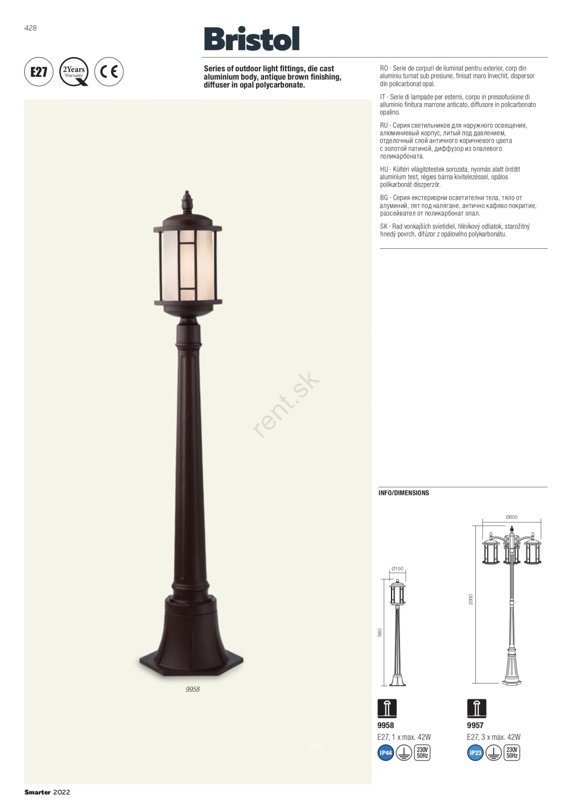 Redo 9956 - Vonkajšie závesné svietidlo na reťazi BRISTOL 1xE27/42W/230V IP23 charakterizuje pekný dizajn a funkčné prevedenie.  Do svietidla je určená žiarovka s päticou E27. Tu si môžete kúpiť ďalšie žiarovky za výhodnú cenu. Získate tak zaujímavý doplnok do svojho domova.