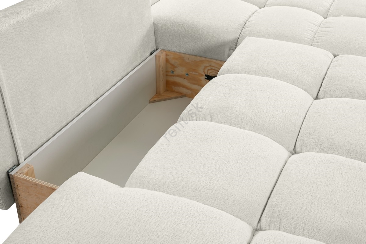 Sedačka disponuje priestranným úložným priestorom na uloženie posteľnej bielizne a ďalších sezónnych vecí.