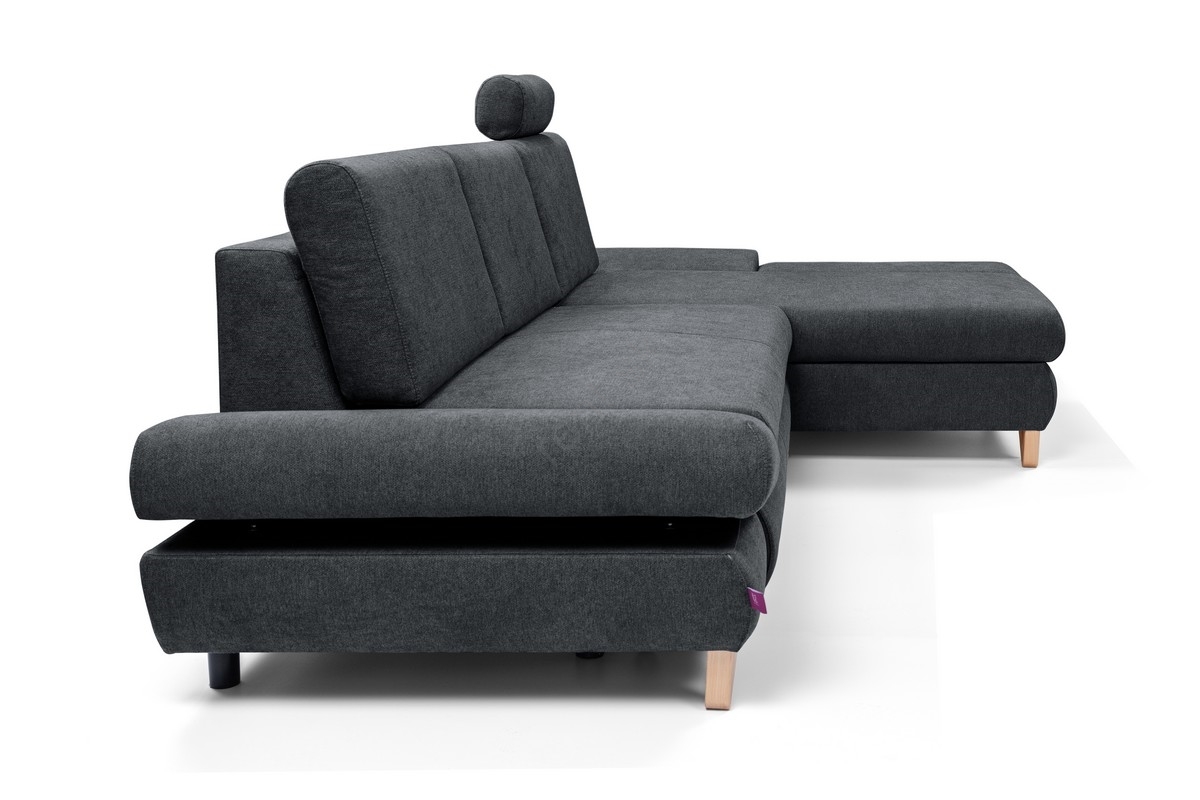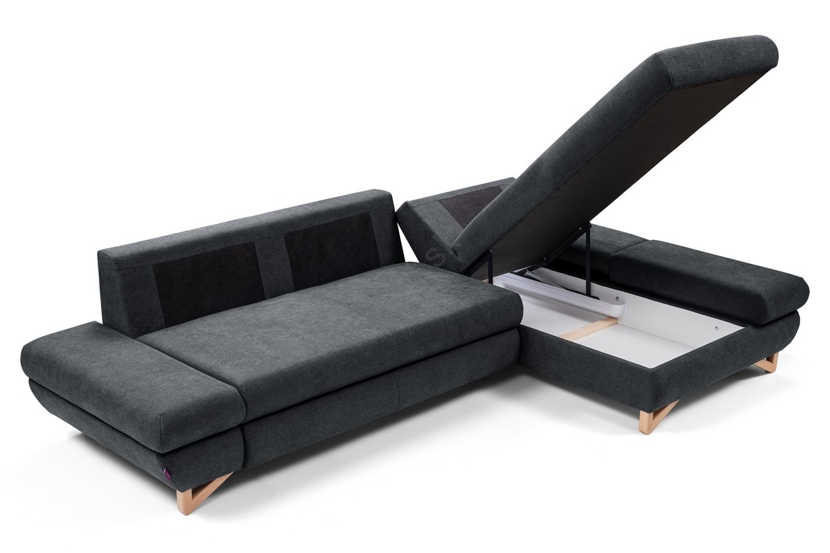 Rozkladacia rohová čalúnená sedačka AVESTA do tvaru L, pravá, antracit, s úložným priestorom