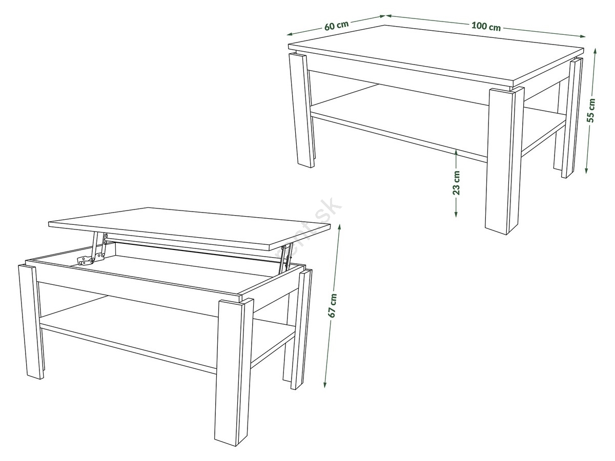 • Skvele sa hodí ako konferenčný stolík do obývacej izby a dá sa zdvihnúť a použiť ako pracovný stôl pre notebook aj na pohodlné stolovanie.