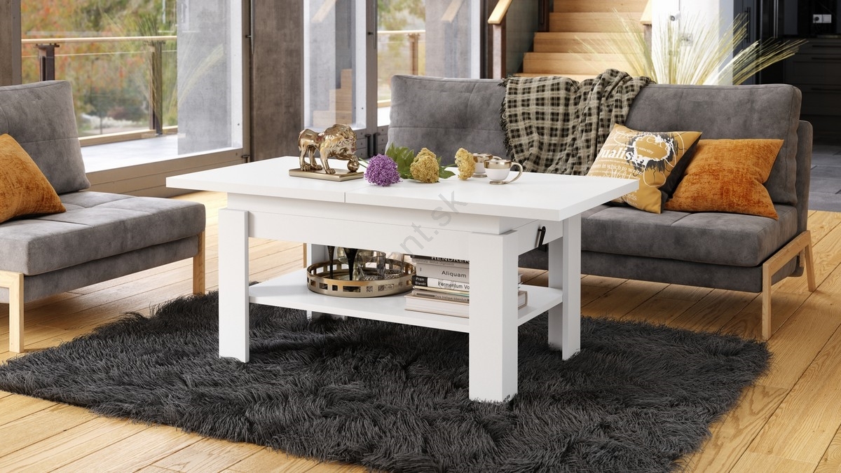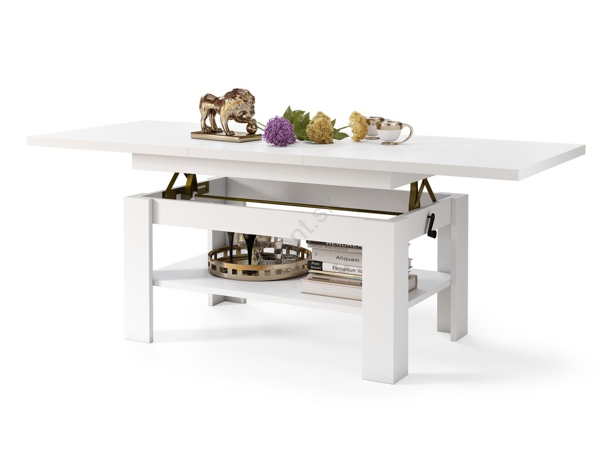 • Rozkladací konferenčný stôl s výškovo nastaviteľnou doskou ROY 130/170x65 cm biela
