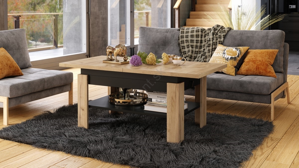 • Rozkladací konferenčný stolík so zdvíhacou doskou ROY 130/170x65 cm dub craft/čierna