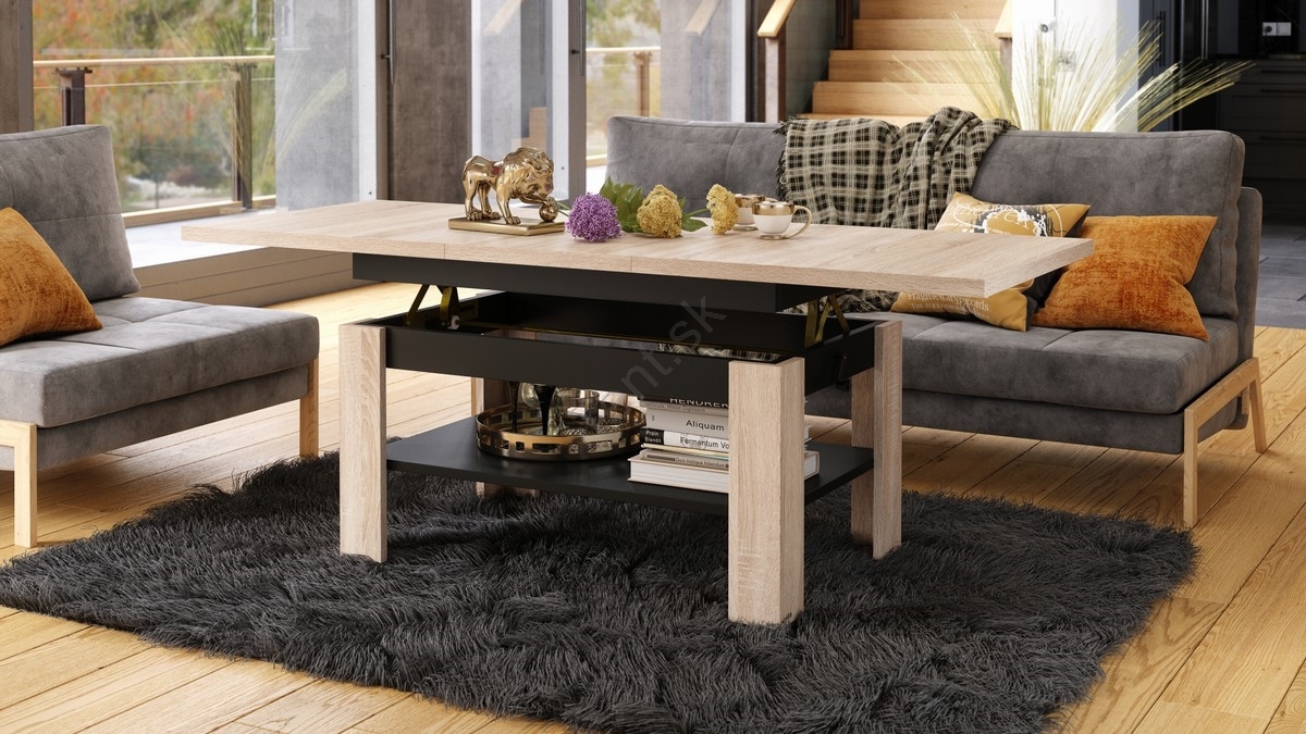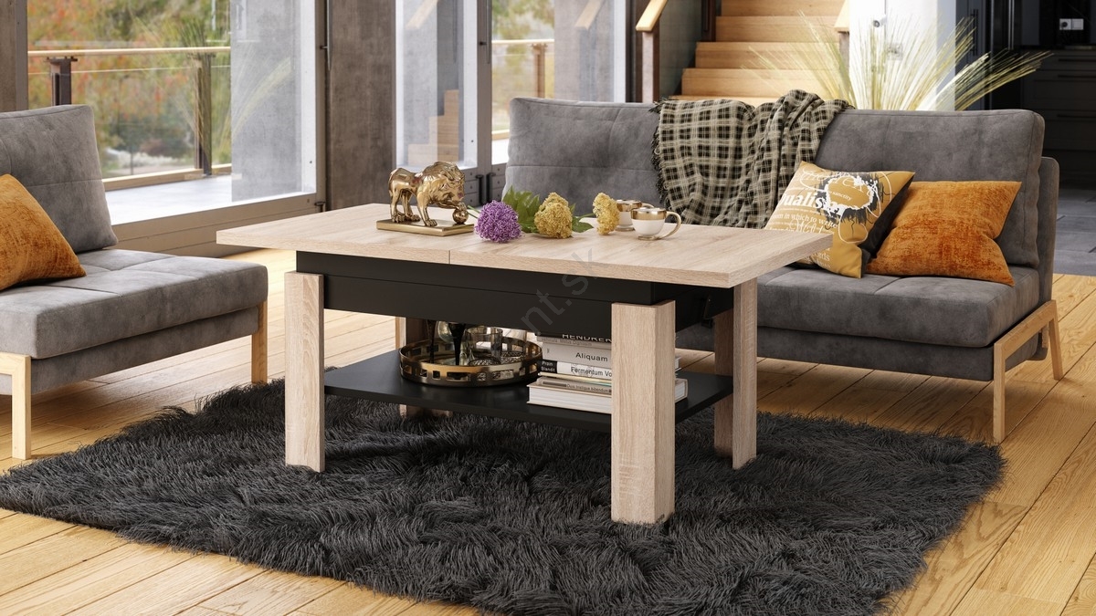 Rozkladací konferenčný/jedálenský stôl s výklopno-zdvíhacou doskou ROY dub sonoma/čierna