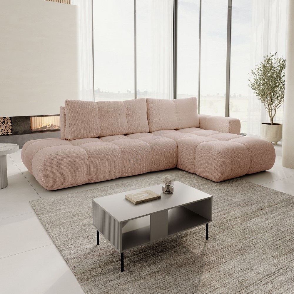Moderná rozkladacia rohová sedacia súprava ALMADA (pravý roh) je ideálnou voľbou pre každého, kto hľadá kombináciu štýlu, pohodlia a praktičnosti.