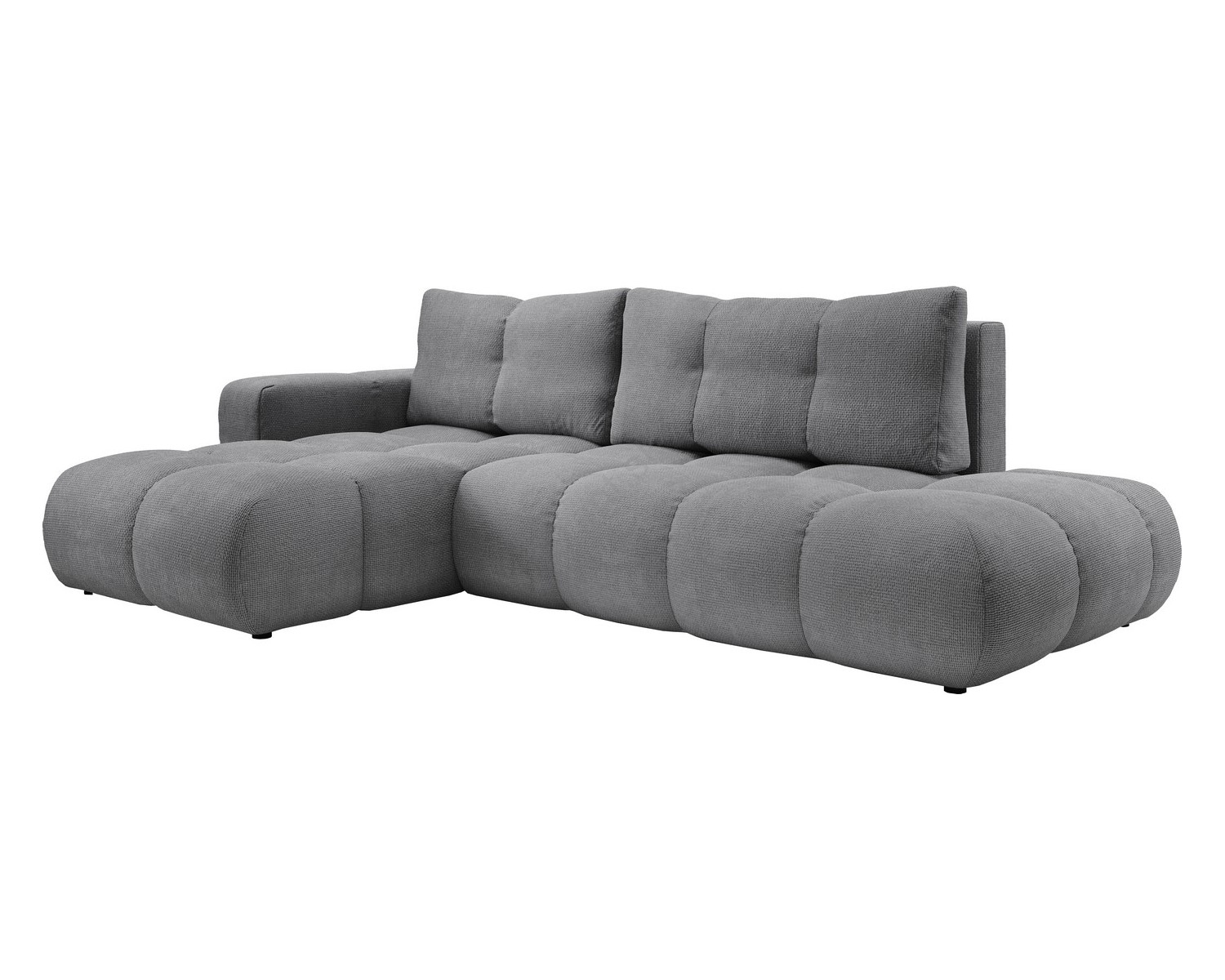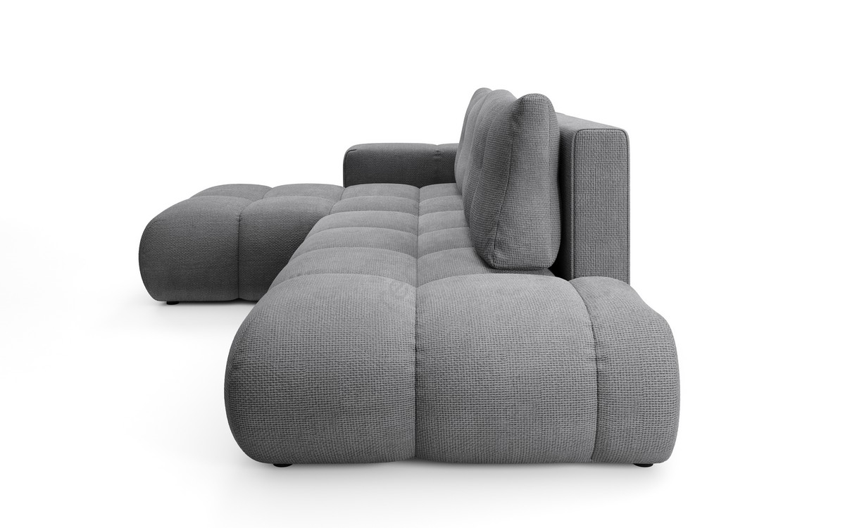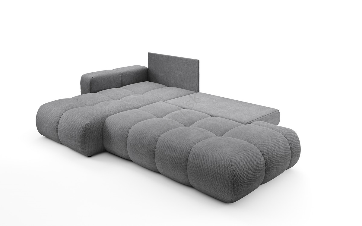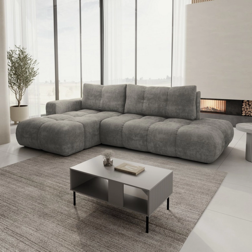 • Rozkladacia ľavá rohová čalúnená sedacia súprava do tvaru L s úložným priestorom ALMADA sivá