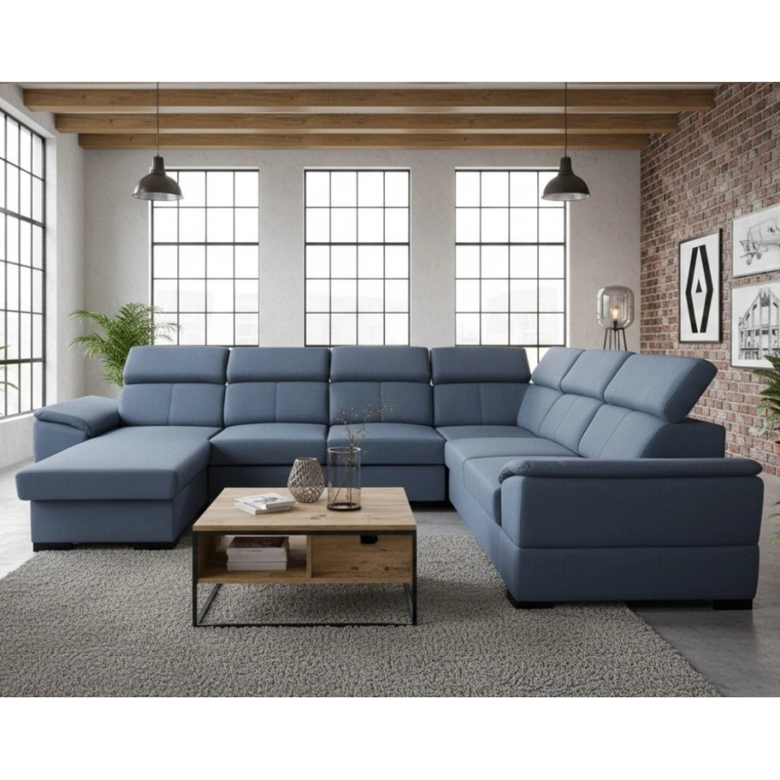 • Rozkladacia sedacia súprava s univerzálnym U-rohom a úložným priestorom GRANADA modrá