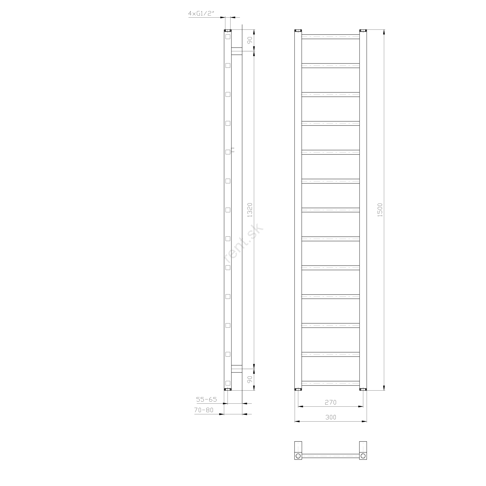 Sapho - Kúpeľňový radiátor METRO LIGHT 276 W 30 × 150 cm biely
