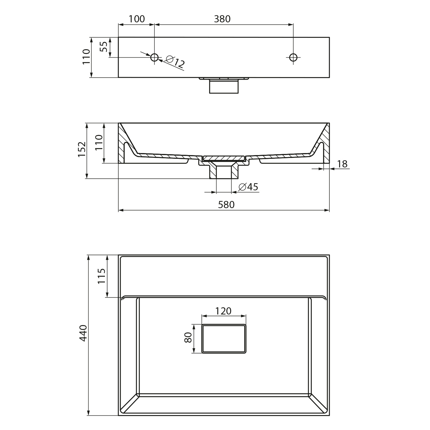 • Má rozmery 580x440 mm a výšku 110 mm.