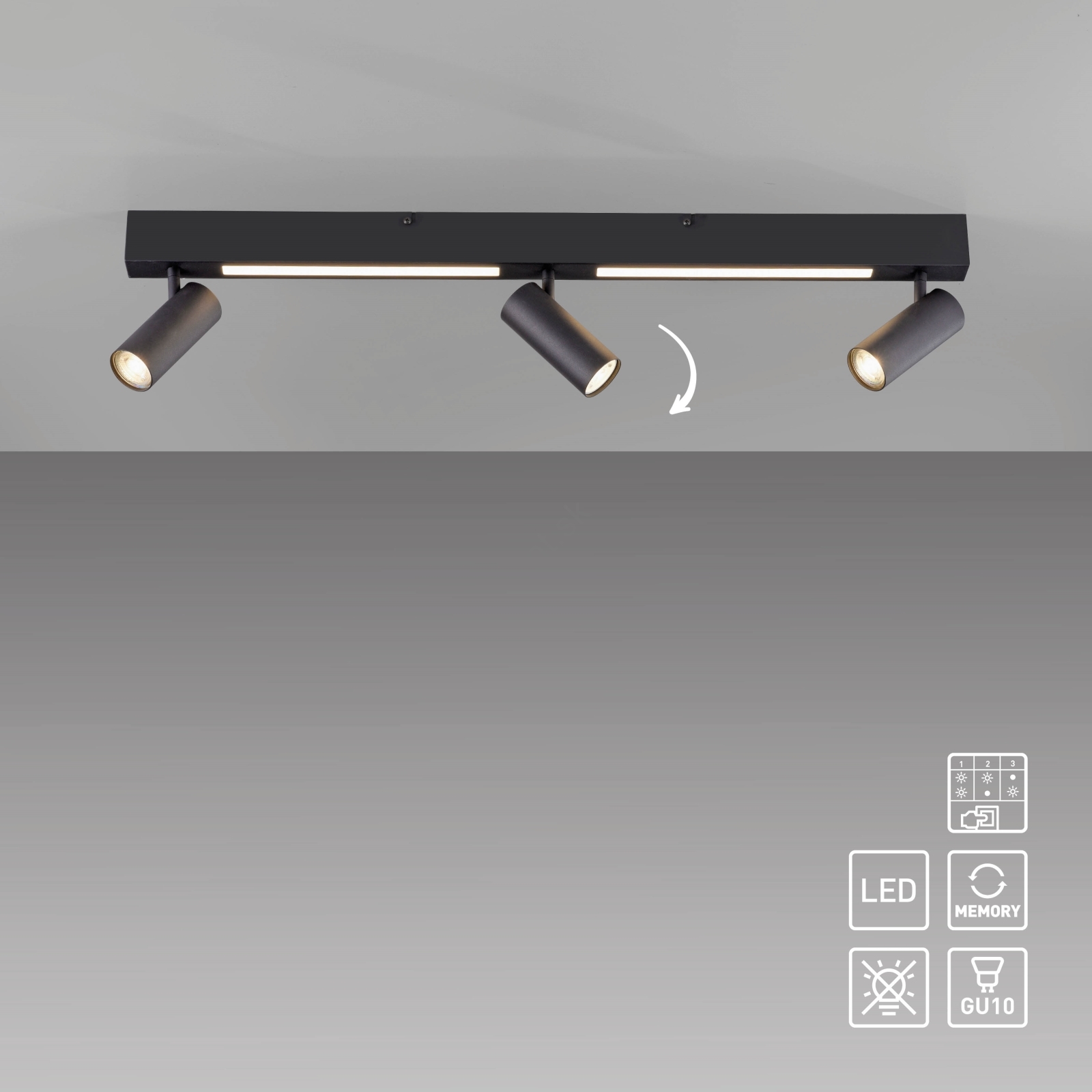 Schöner Wohnen 11794-18 - LED bodové svietidlo DANTE 3×GU10/10 W/230 V + LED/14,4 W čierne