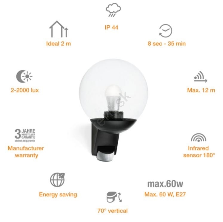• Nástenná lampa so senzorom a jednoduchým klasickým dizajnom pre dom a záhradu.