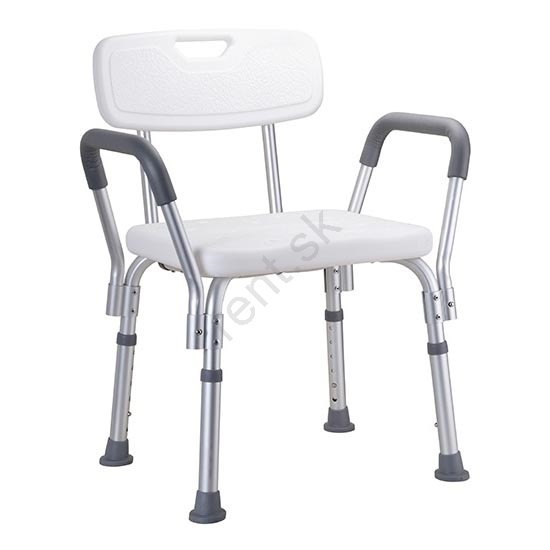 • Sprchová stolička s opierkou a podrúčkami pre maximálne pohodlie a bezpečnosť.