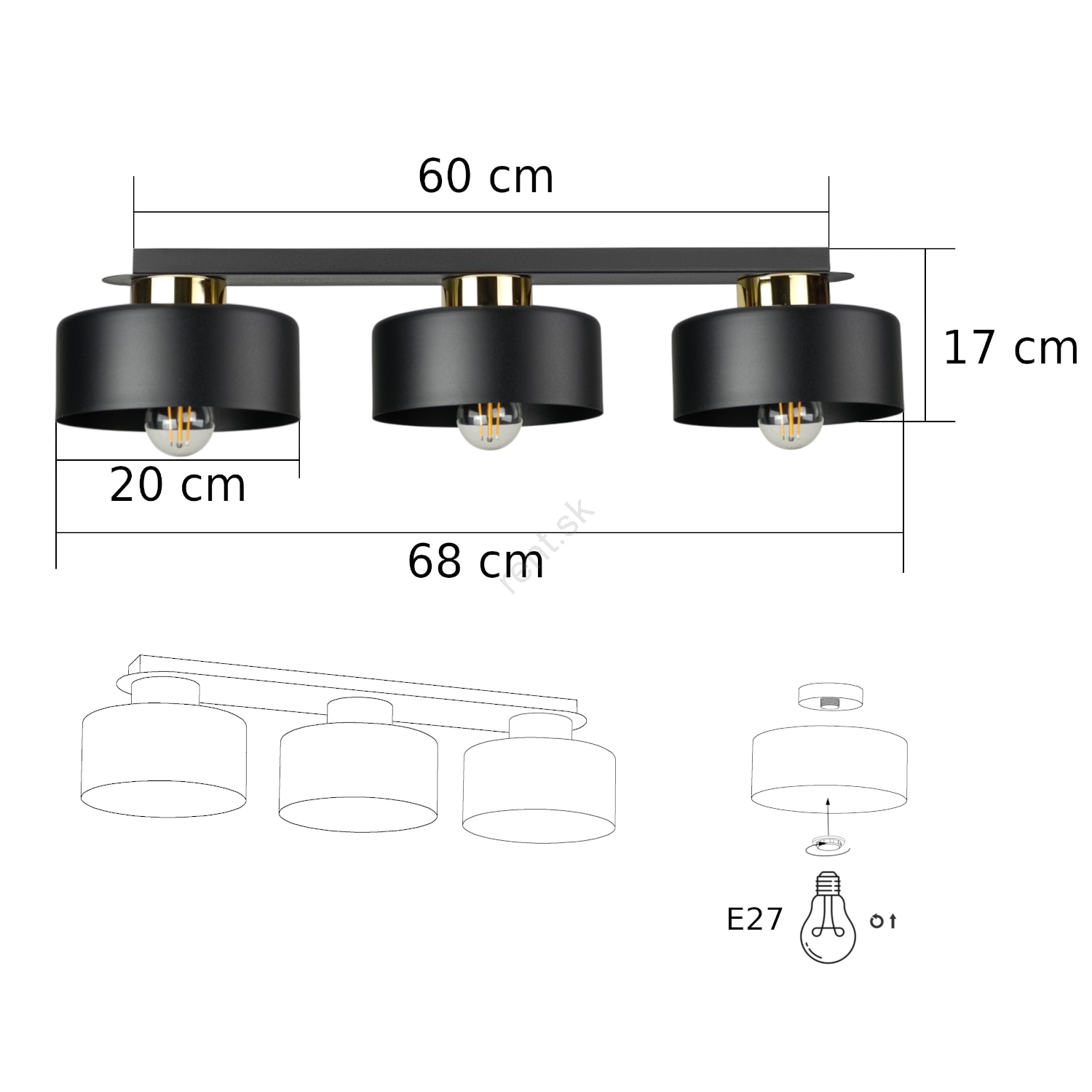 • Stropné svietidlo IGNIA 3xE27/60W/230V čierne