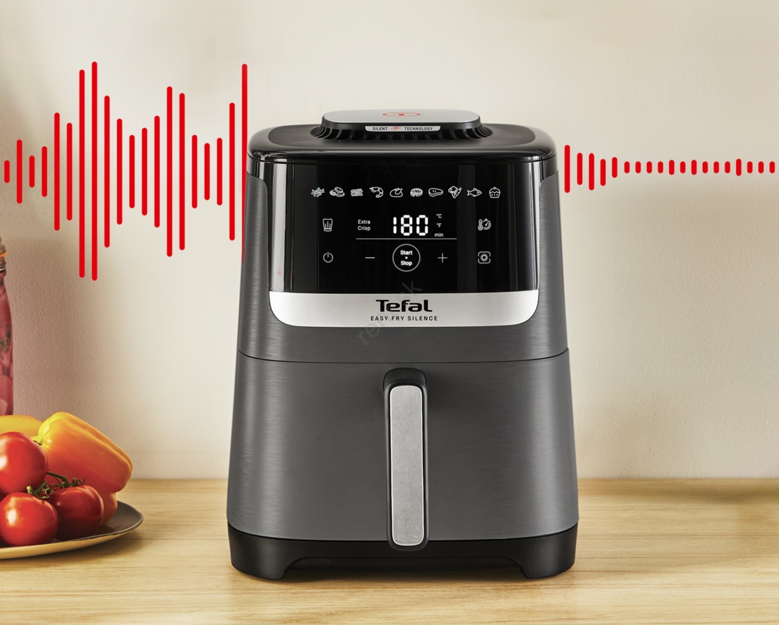 Tefal - Teplovzdušná fritéza 5 l EASY FRY SILENCE COAL 1400-1670W/230V