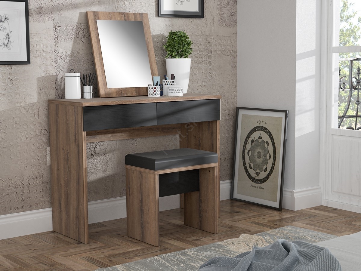 Toaletný stolík JUNO + taburet 45x29,6 cm hnedá/čierna
