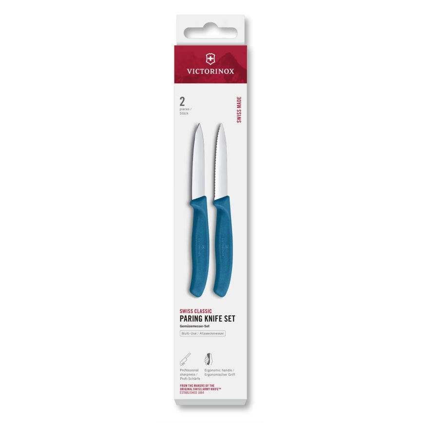 Victorinox - 2-dielna sada kuchynských nožov na zeleninu SWISS CLASSIC, 8 cm, modrá