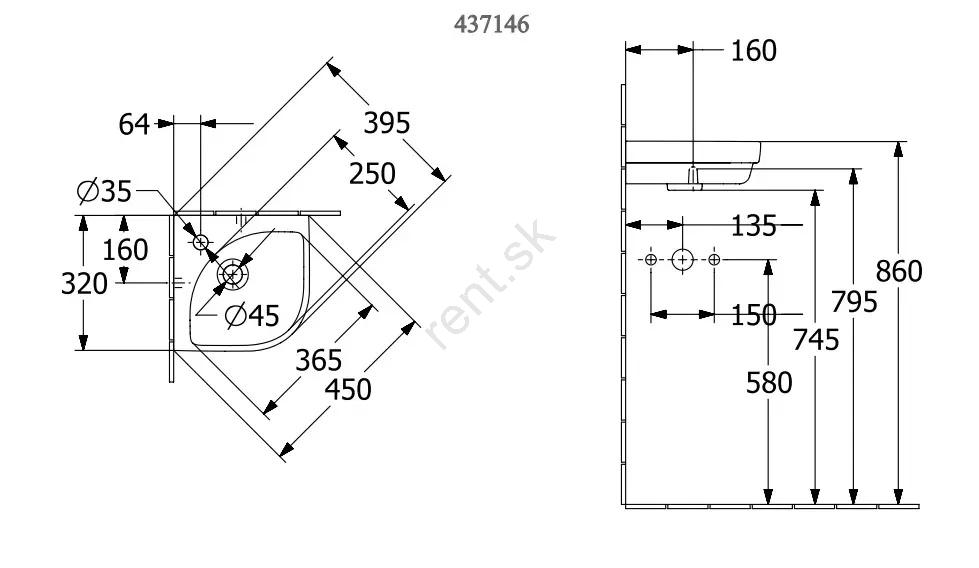 Villeroy & Boch 43714601 - Rohové závesné umývadlo SUBWAY 3.0 32x32 cm keramika/biela