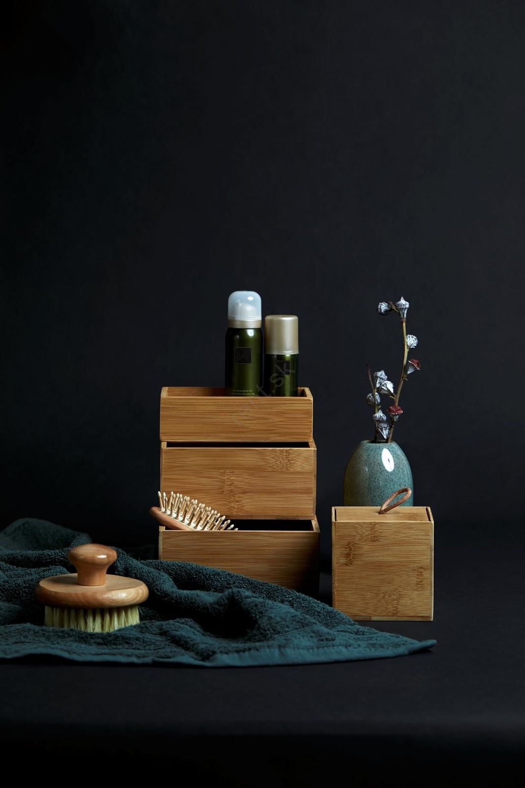 • Elegantný bambusový podnos z kolekcie Terra pre kúpeľňové doplnky.