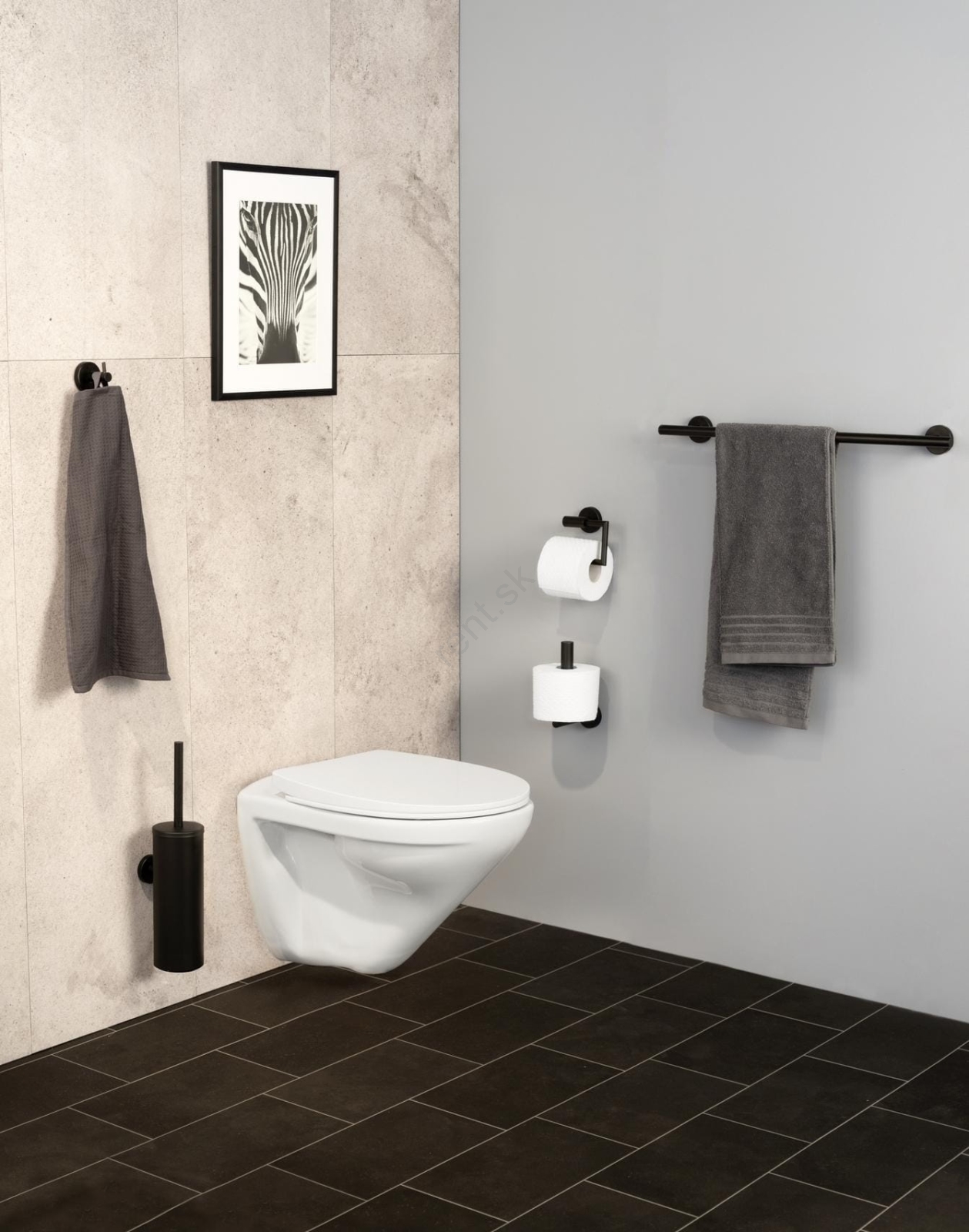 • Elegantný držiak náhradných toaletných roliek v modernom industriálnom štýle.