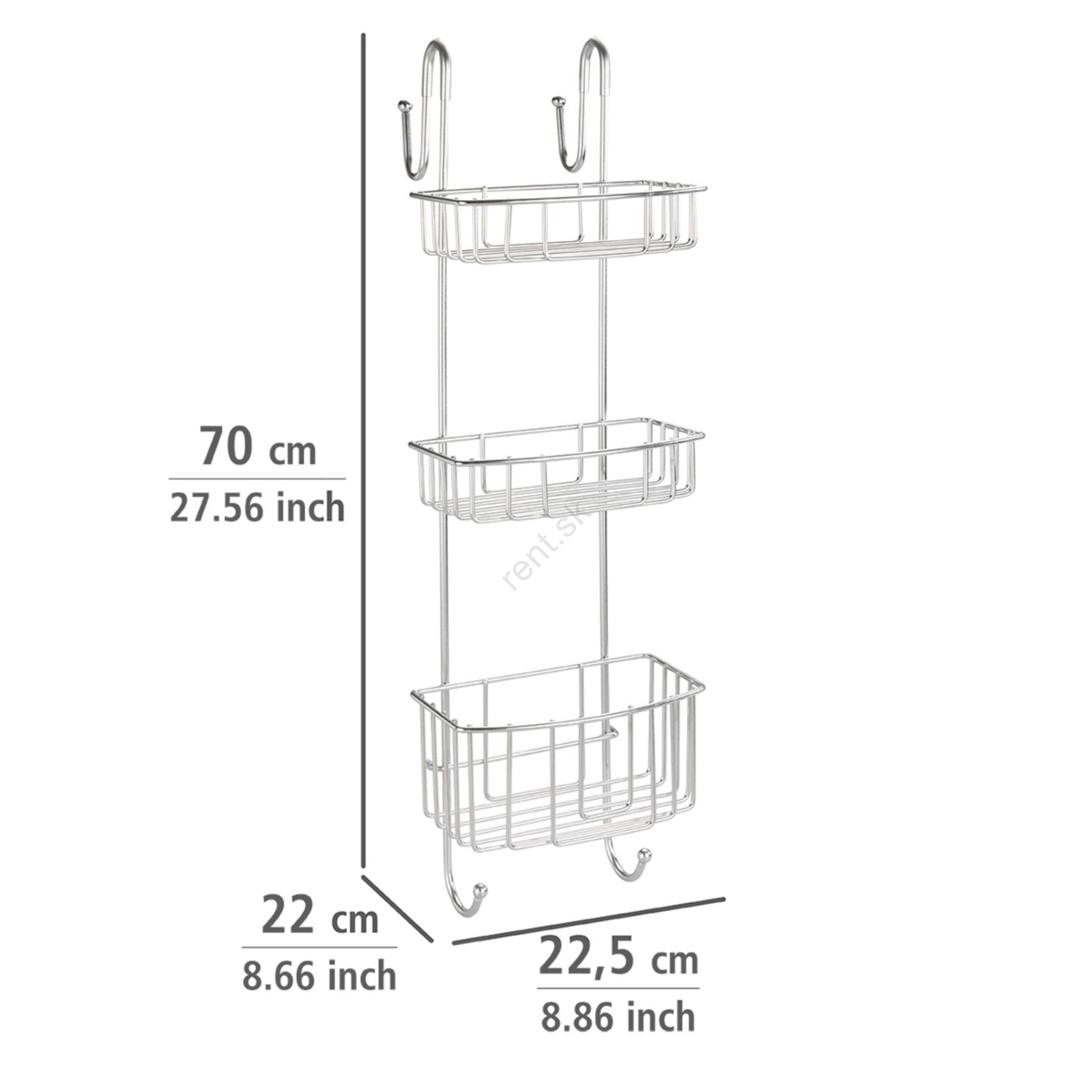 • Trojposchodový závesný organizér do sprchy s dostatkom úložného priestoru.