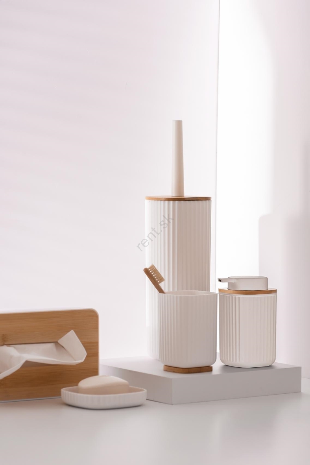 • Kombinácia bielej farby a prírodného bambusového viečka pôsobí moderne a nadčasovo.