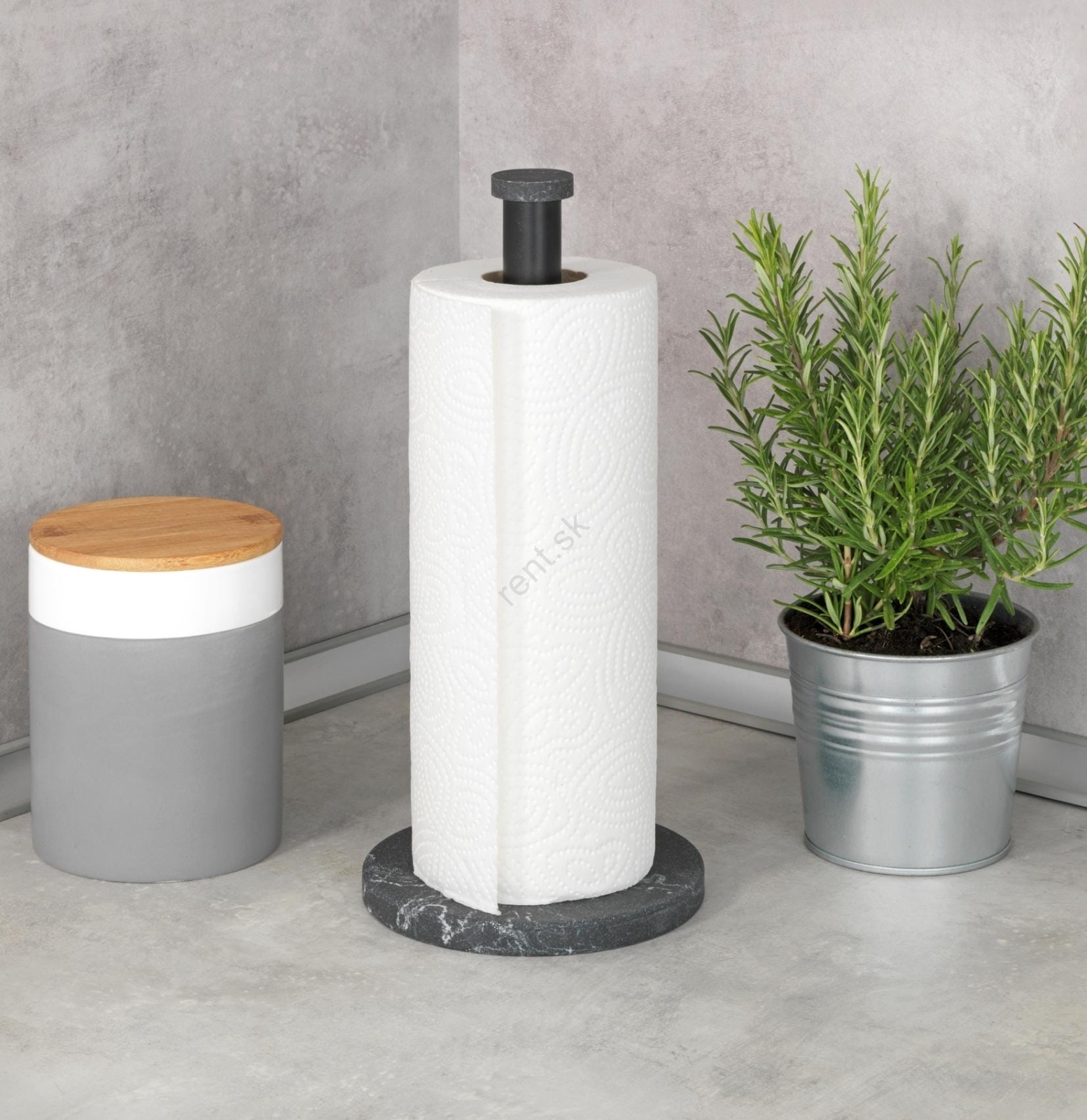 • Elegantný stojan na kuchynské utierky v čiernom mramorovom dizajne.